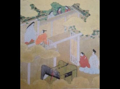 身分の低い者の家に用いるとはいえ、乳母(めのと)の住む隣家(りんか)は檜垣(ひがき)もすだれも新しくして、むさくるしげなこのあたりに似つかわしくなく、ふと源氏の目にとまりました。のみならず「美しい顔つきの女の簾(すだれ)を通して見える姿」も見え、「動き回っているらしい下半身」まで想像するというように、源氏は、「どのような者が集まっているのであろうか」と物珍しく感じ、その家に住む人へと関心を移し、好奇心がわいてきます。